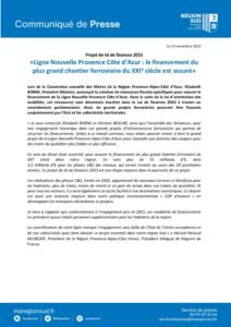 Communiqué de presse - Financement phase 1 de la LNPCA